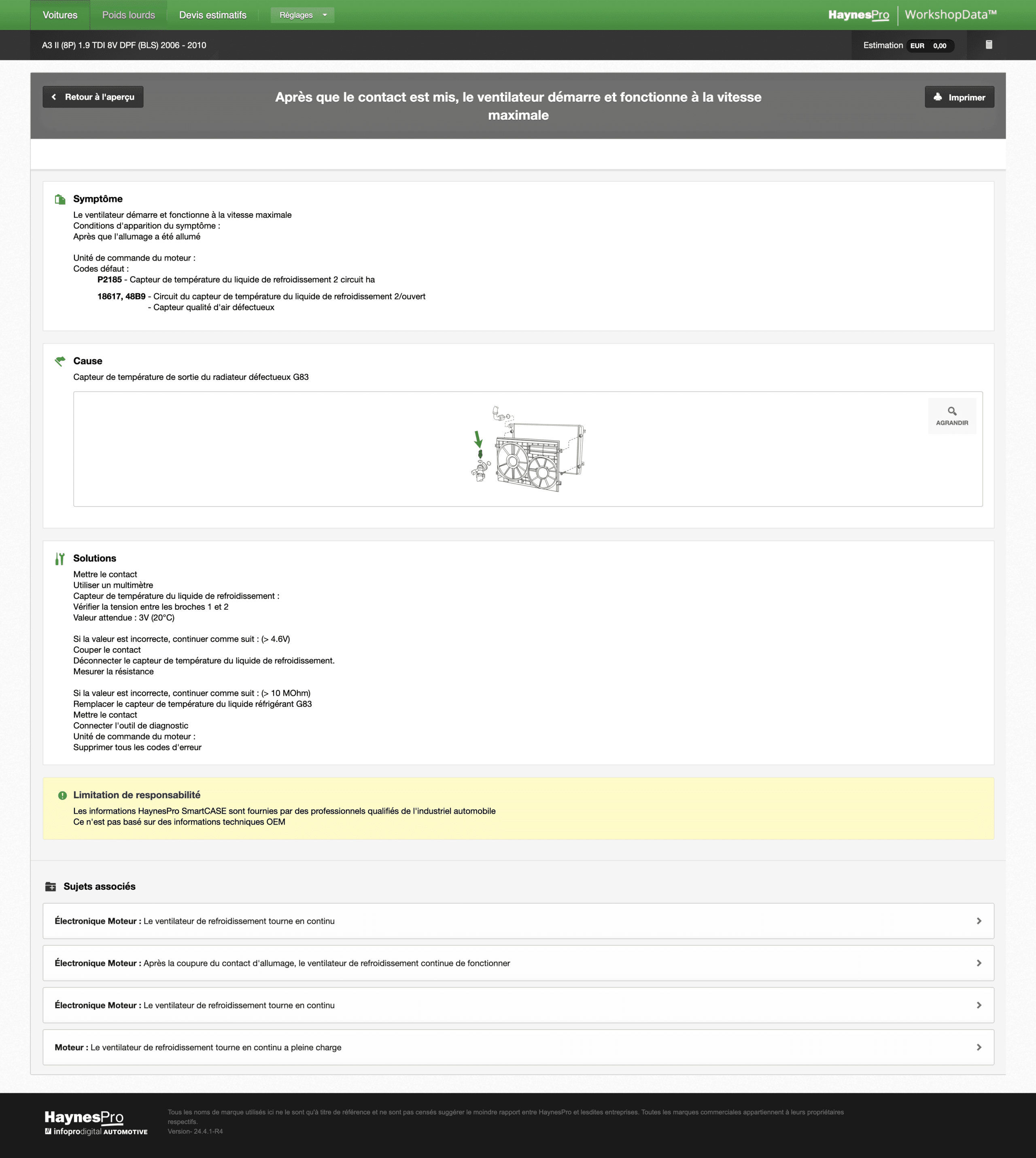 Notre assistant de diagnostic électronique vous aide à réduire les heures non facturables en vous accompagnant lors de recherches de pannes ou défauts de composants, en traitant jusqu’à sept codes d’erreur à la fois. Retrouvez également des descriptions de codes d’erreur, une liste de composants à tester, des correctifs vérifiés, des conseils d’experts, des bulletins de service technique et des données de rappel liées.
